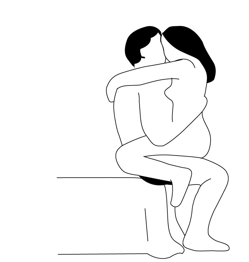 Vrouw bovenop: Dan gaat de vrouw bovenop de man zitten, met haar benen gekruist om zijn middel geslagen. Ze kan haar voeten achter zijn rug kruisen voor extra stabiliteit.