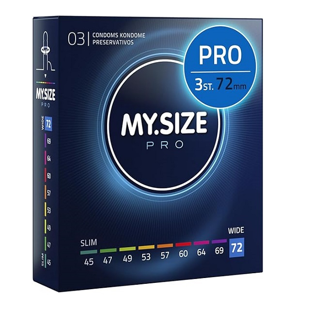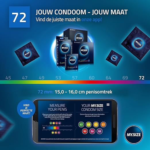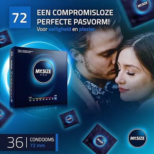 My.Size pro 72 mm condooms zijn extra dunne condooms voor meer veiligheid door juiste pasvorm met tegelijkertijd een intens gevoel. De My.size pro condooms zijn gemaakt van Vytex latex, 90% minder latexproteïnen dan gewone latex. Uitermate geschikt voor mensen met een latex allergie. De My.Size pro condooms ruiken ook niet naar rubber omdat er gebruikt gemaakt is van zeer ziuivere Vytex Later