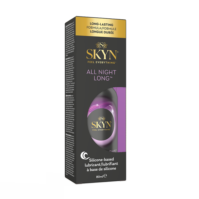 Skyn All Night Long is een glijmiddel ontworpen voor penis- en vaginale toepassing. De formulering op siliconenbasis kan onverenigbaar zijn met siliconen seks speeltjes. Als je dit product wilt gebruiken met siliconen dildo's of intieme stimulators, is het aan te raden om een patchtest uit te voeren.